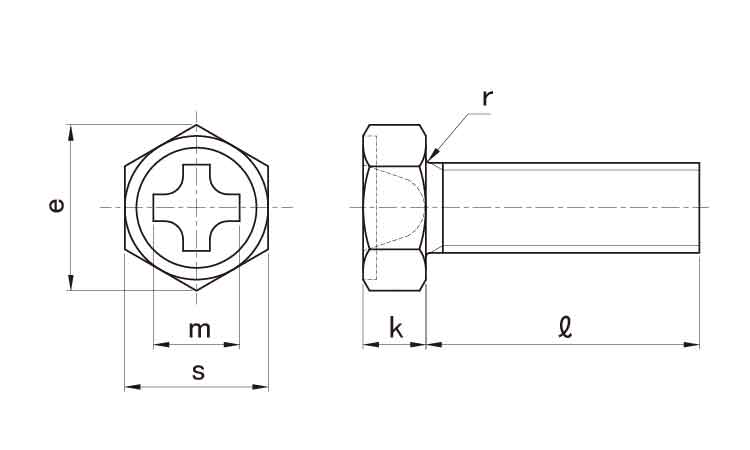 十字穴がないアプセットの六角ボルトもあり、そちらは六角ボルトの仲間になります。 通常の六角ボルトは、トリーマーといって、円形の頭をつくってから六角形の穴が開いたダイスに通して成型しています。