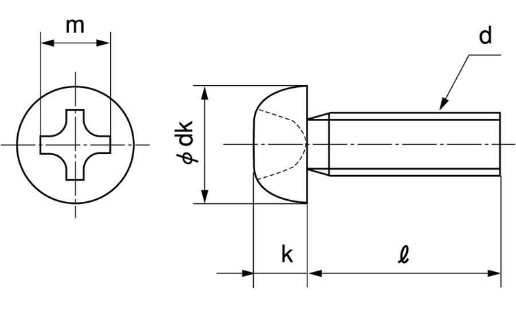 最も多く使われている、代表的な小ねじです。上面の角に丸みを持たせた形状をしています。頭に厚みがあるので、ドライバーとしっかりかみ合うことができ、強く締め付けることができます。