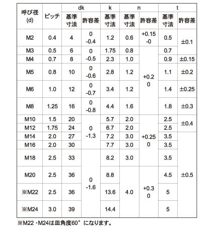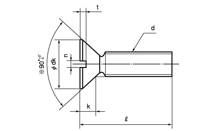 呼び長さを表すとき、ほかのねじでは軸の部分の長さを表すことが多いのですが、皿小ねじでは頭からの長さを表しますので、同じ呼び長さのほかのねじより、短く見えることがあります。"