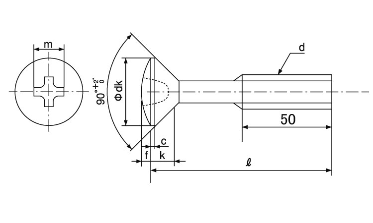 十字穴付(+)丸皿小ねじ(ねじ部50(並目