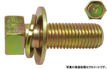 緩みや座面の陥没を防ぐために使われる座金を、予めネジに組み込んだものです。座金を入れ忘れや、落ちてなくしてしまう煩わしさがなくなり、作業効率を上げることができます。