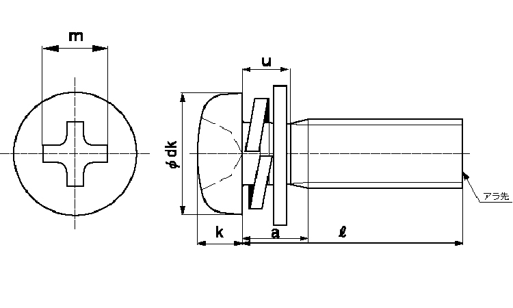 緩みや座面の陥没を防ぐために使われる座金を、予めネジに組み込んだものです。座金を入れ忘れや、落ちてなくしてしまう煩わしさがなくなり、作業効率を上げることができます。
