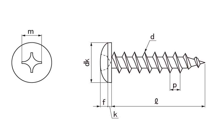 | タッピンではピッチが最も荒い。 先端部まで尖り、先端までネジ山が立っている。 | |