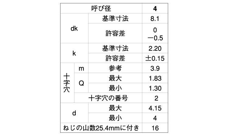 鉄 | 三価ホワイト(銀) | 4 X 16 | 要確認 | なし | 900 | 4.2円 3.82円 | ||
