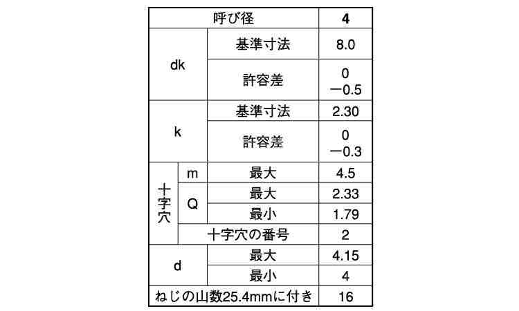 鉄 | 三価ホワイト(銀) | 4 X 16 | 要確認 | なし | 1,200 | 4.51円 4.1円 | ||