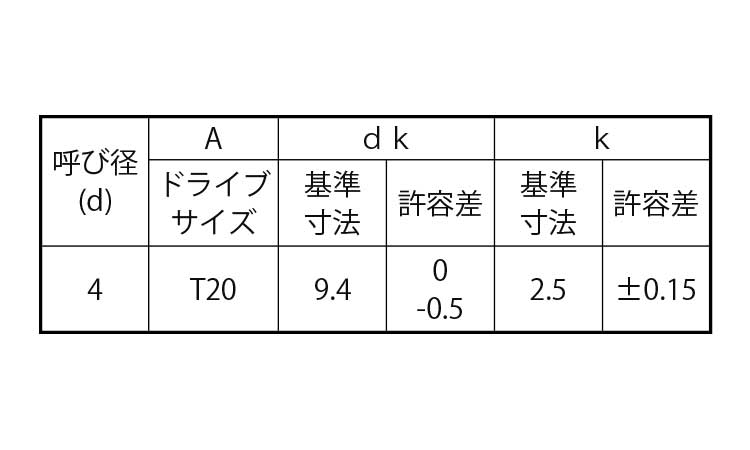 ステンレス | BK(黒) | 4 X 20 | あり | なし | 500 | 22.05円 20.05円 | ||