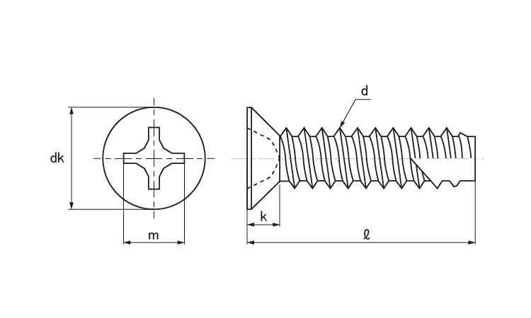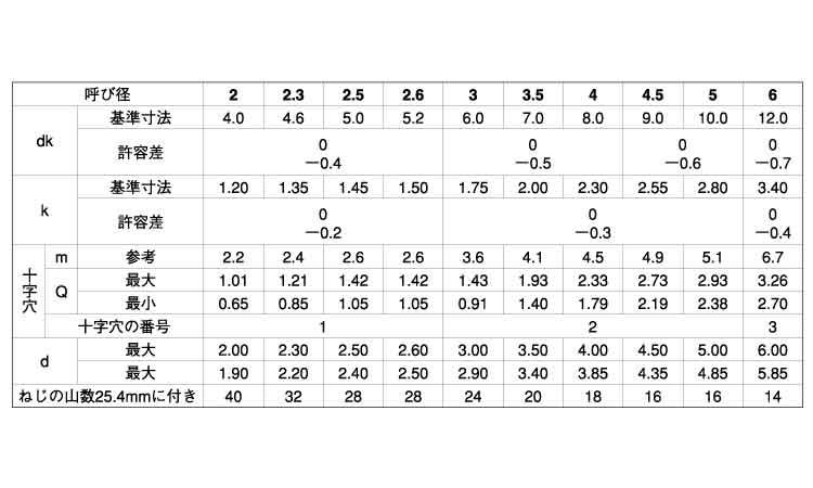 | 先端2~2.5山がテーパーになっており、2種タッピンの先端を1/4カットしてあり、カット部は刃の役割をして相手材を、削っていく。 | |