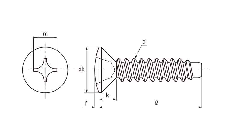 十字穴付(+)B0丸皿タッピングネジ