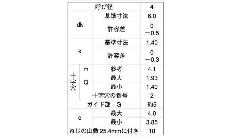 ステンレス | SC-4 | 4X25(G=5 | 要確認 | なし | 1,000 | 9.98円 9.08円 | ||