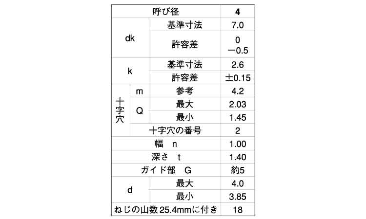 ステンレス | SC-4 | 4X25(G=5 | 要確認 | なし | 1,000 | 8.8円 8円 | ||