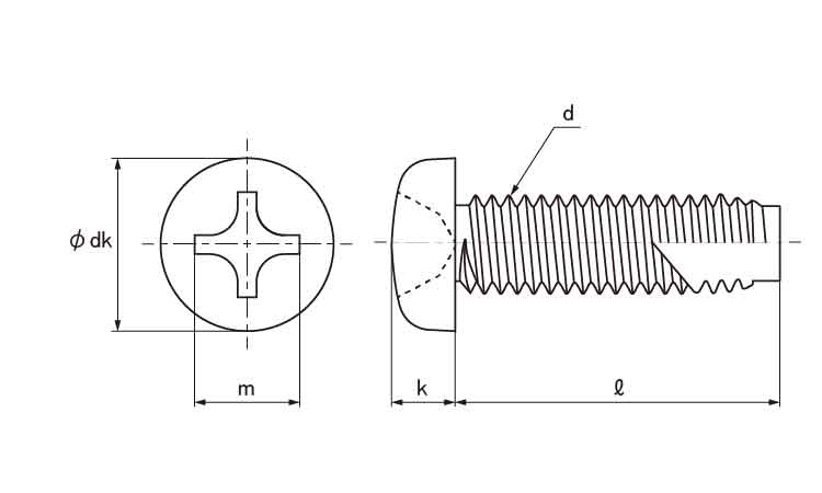 なべ頭とは最も多く使用される代表的なネジ。上面の角に丸みを持たせた形状をしている。"