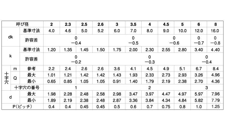 形状:先端2.5~3山がテーパーになっており、3種タッピンの先端を 1/4カットしてあり、カット部は刃の役割をして相手材を削っていく。小ネジとおなじピッチ。