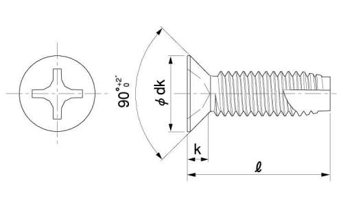 形状:先端2.5~3山がテーパーになっており、3種タッピンの先端を 1/4カットしてあり、カット部は刃の役割をして相手材を削っていく。小ネジとおなじピッチ。