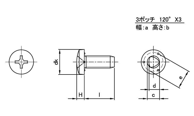 十字穴付(+)Sタイプバインド(3ポッチ
