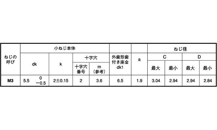 鉄 | BC(黒) | 3 X 12 | 要確認 | なし | 2,500 | 6.64円 6.04円 | ||