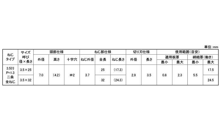 鉄 | 三価ホワイト(銀) | 3.5 X 32 | 要確認 | なし | 1,000 | 10.39円 9.45円 |