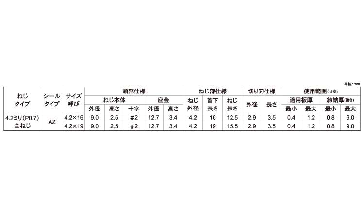 SUS410 | SGサスガード | 4.2 X 19 P=0.7 | 要確認 | なし | 400 | 37.54円 34.13円 |