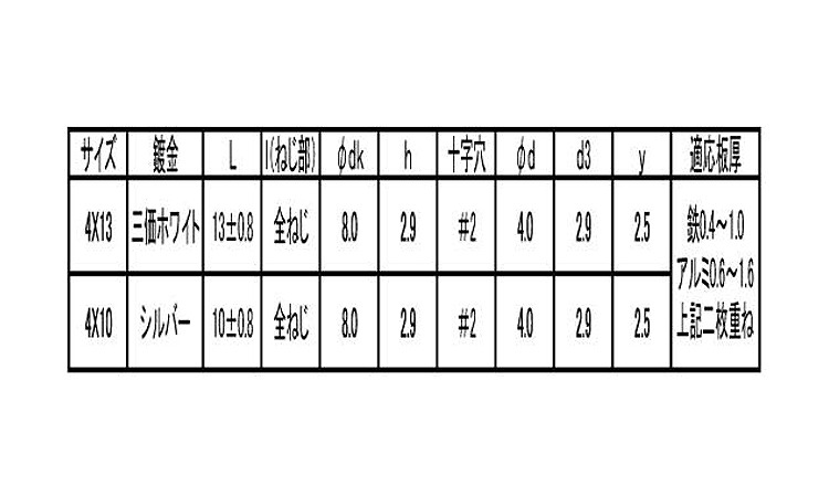 鉄 | 三価ホワイト(銀) | 4 X 13 | あり | なし | 1,000 | 6.52円 5.93円 | ||
