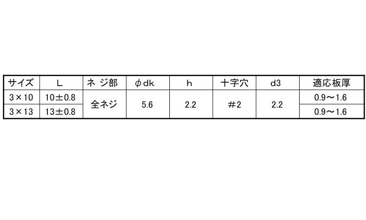 鉄 | 三価ステンコート(銀) | 3 X 13 | 要確認 | なし | 2,000 | 6.62円 6.02円 | ||