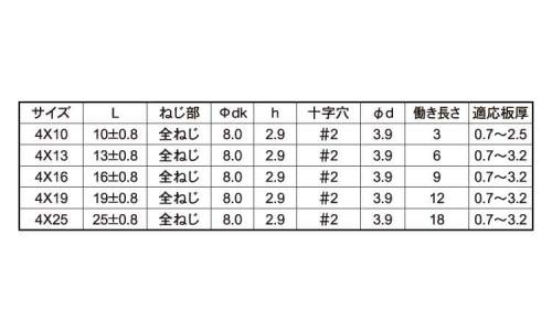 SUS410 | GB(茶) | 4 X 13 P=0.7 | あり | あり | 1,000 | 10.63円 9.67円 | ||