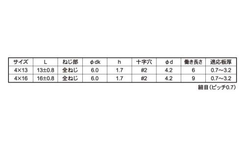 SUS410 | BK(黒) | 4 X 13 P=0.7 | 要確認 | なし | 1,000 | 13.76円 12.51円 |