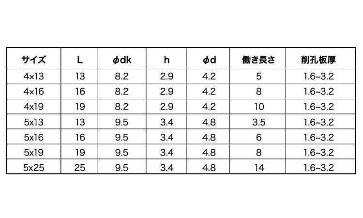 鉄 | 三価ホワイト(銀) | 4 X 16 | あり | なし | 1,000 | 6.25円 5.69円 | ||