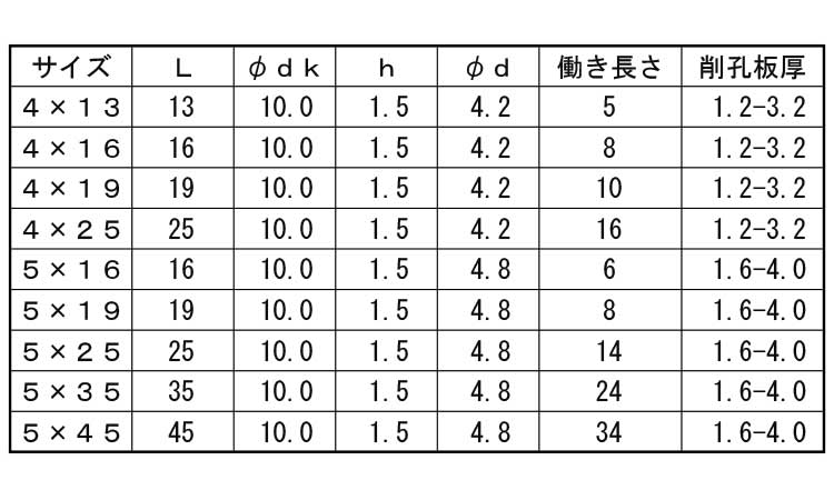 SUS410 | BK(黒) | 4 X 19 | あり | なし | 500 | 16.35円 14.87円 | ||