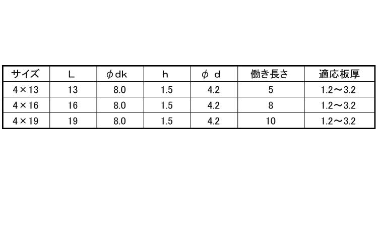 SUS410 | BK(黒) | 4 X 13 | あり | なし | 800 | 12.03円 10.94円 | ||