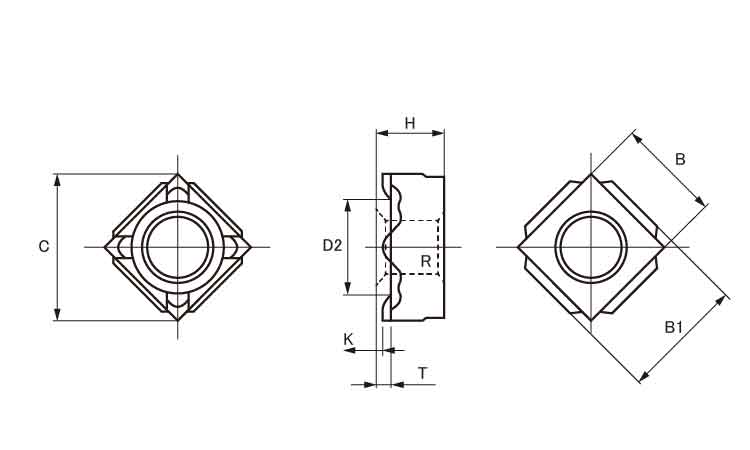 ●溶接の際の位置決め用にパイロット(ナットの底部にあるリング状の座)を持った溶接ナットになります。