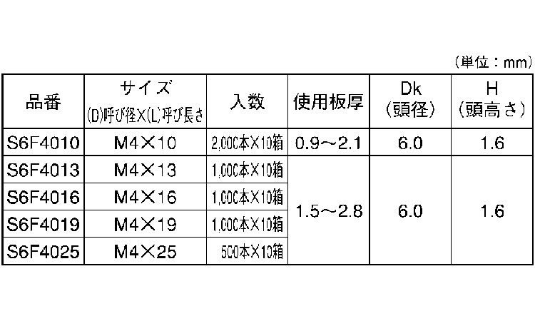 SUS410 | BK(黒) | 4 X 19 | あり | あり | 1,000 | 10.4円 9.45円 | ||
