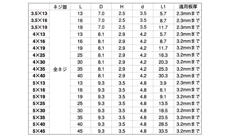 サイズ 径+長さ(ℓ) |