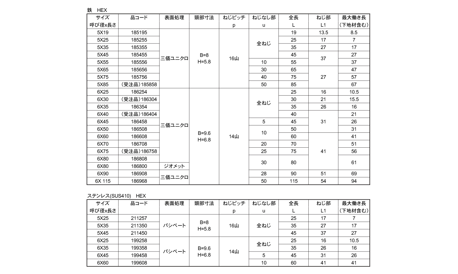 鉄 | 三価ホワイト(銀) | 6X60 | 要確認 | あり | 200 | 43.73円 39.76円 | ||