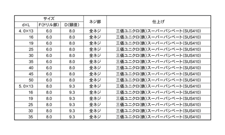 鉄 | 三価ホワイト(銀) | 4X13 | 要確認 | なし | 100 | 7.62円 6.93円 | ||