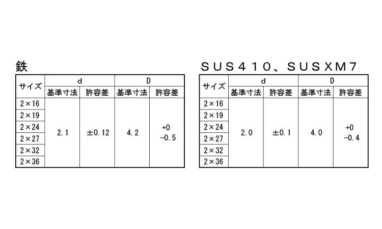SUS410 | GB(茶) | 2 X 16 | あり | なし | 3,000 | 6.54円 5.95円 | ||