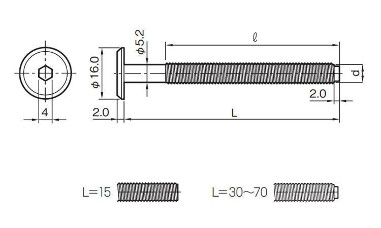 ●首下径をねじ径と同一にした経済的製品です。