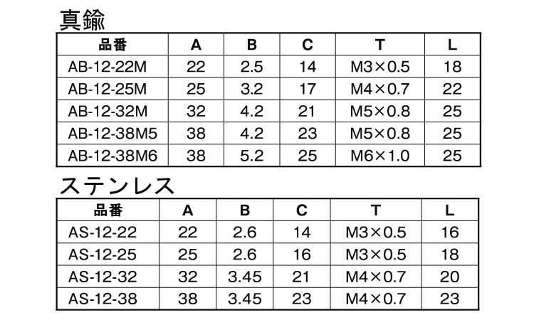 黄銅 | 生地 | AB-12-38M5 | あり | なし | 200 | 115円 105円 | ||