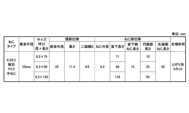 鉄 | 三価ホワイト(銀) | 6.3X75 | 要確認 | なし | 150 | 211円 192円 | ||