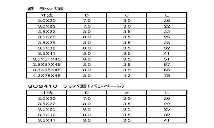 鉄 | 塗装ホワイト | 3.5 X 41 | 要確認 | あり | 500 | 7.76円 7.05円 | ||