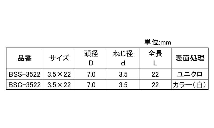 鉄 | 三価ホワイト(銀) | 3.5 X 22 | あり | あり | 1,000 | 2.39円 2.17円 | ||