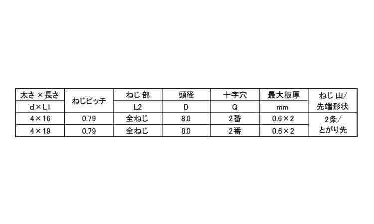 鉄 | 三価ホワイト(銀) | 4 X 16 | 要確認 | なし | 400 | 11.01円 10.01円 | ||