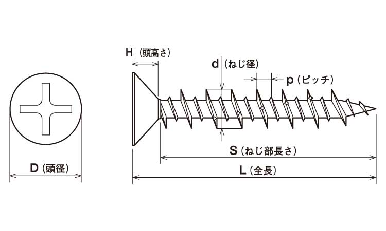 高いねじ山と低いねじ山が交互に並んだ二条のハイローねじで、高い引抜保持力を発揮します。