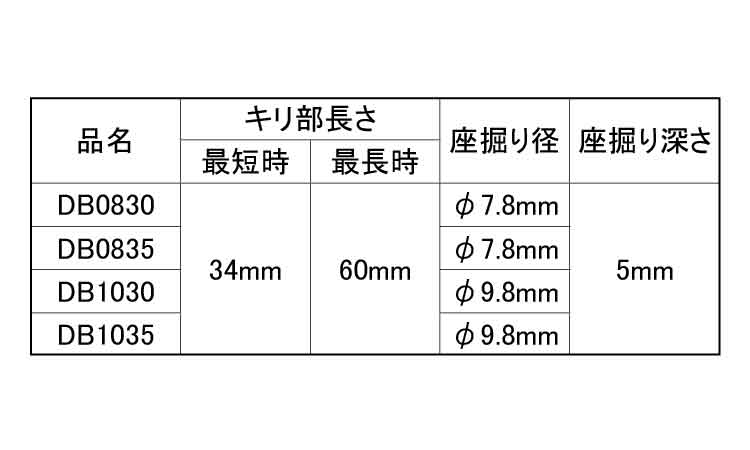下穴キリと段堀ビット(DB)