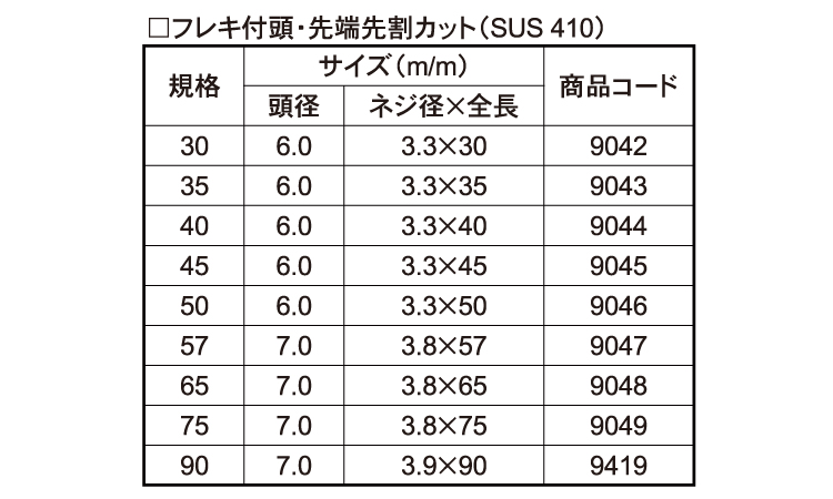 SUS410 | 生地 | 3.9X90 | 要確認 | なし | 35 | 1,655円 1,505円 |