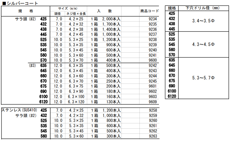 鉄 | ラスパートシルバー | 4X45 | 要確認 | なし | 1,000 | 12.16円 11.06円 | ||