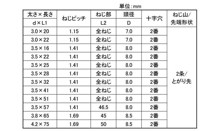 鉄 | 塗装ホワイト | 3.5X22 | 要確認 | あり | 1,000 | 3.38円 3.08円 | ||