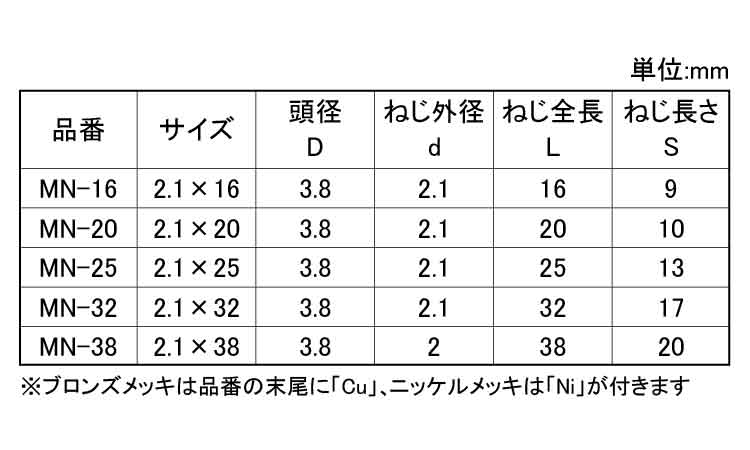 鉄 | クロメート(黄土) | 2.1X25 | あり | なし | 600 | 4.18円 3.8円 | ||