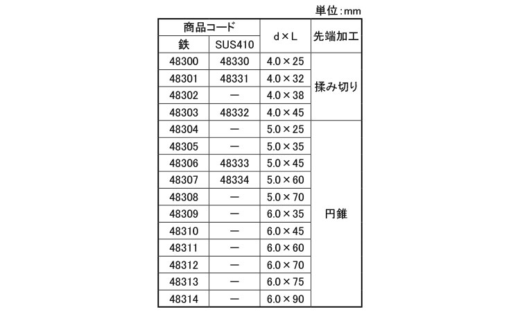 SUS410 | 生地 | 4.0X45(100 | 要確認 | なし | 1 | 3,157円 2,870円 | ||