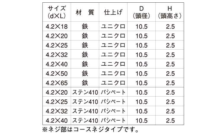 SUS410 | 生地 | 4.2X40 | あり | あり | 250 | 15.01円 13.65円 |