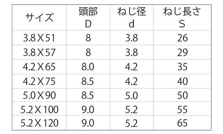 サイズ 径+長さ(ℓ) |