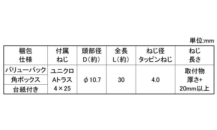 ◆特長:下穴不要、ハンマーで打つだけの簡単施工。ユニクロトラスタッピング4x25mm50本セット